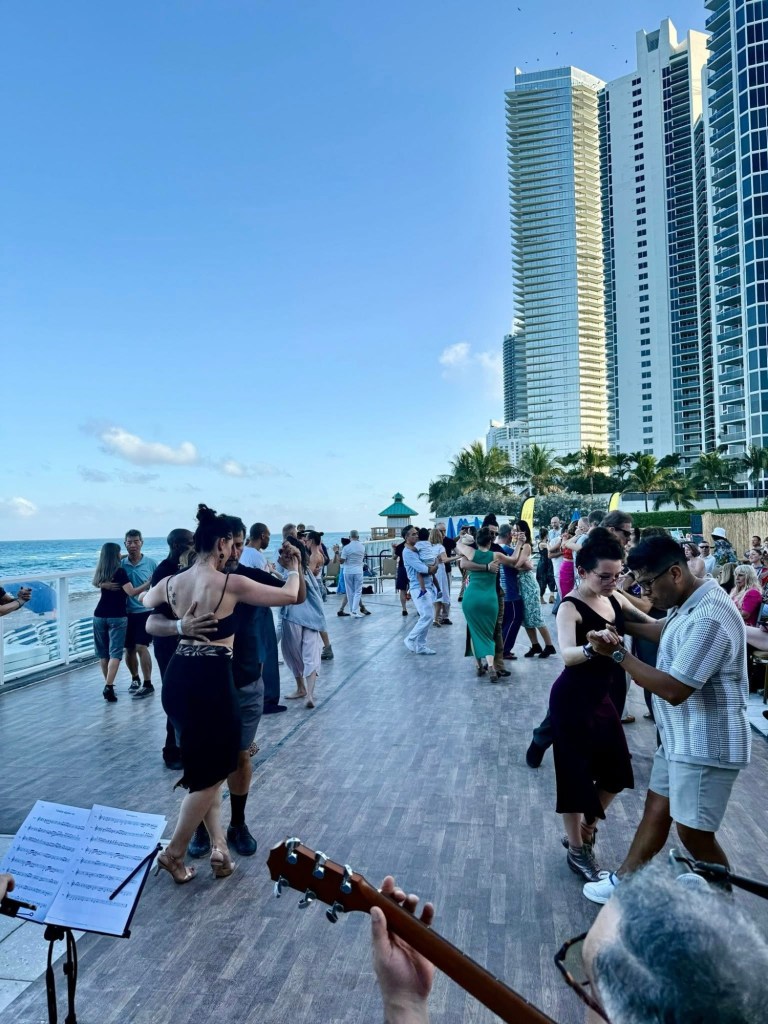 Solo el lugar ya lo convierte en algo mágico. Es Miami. Tienes el mar a unos pasos. Puedes salir a caminar por la playa, sentir la arena, ver el océano… y luego volver a entrar a bailar tango.