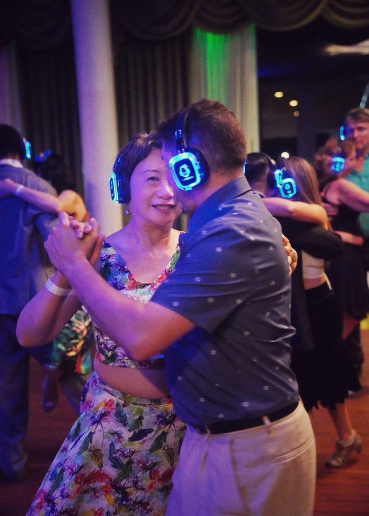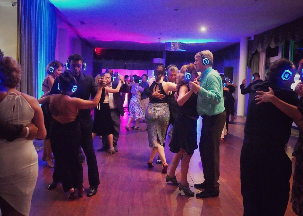 Sin embargo, la experiencia que más me sorprendió fue algo completamente distinto: la milonga con audífonos del sábado en la madrugada, ya entrando el domingo.